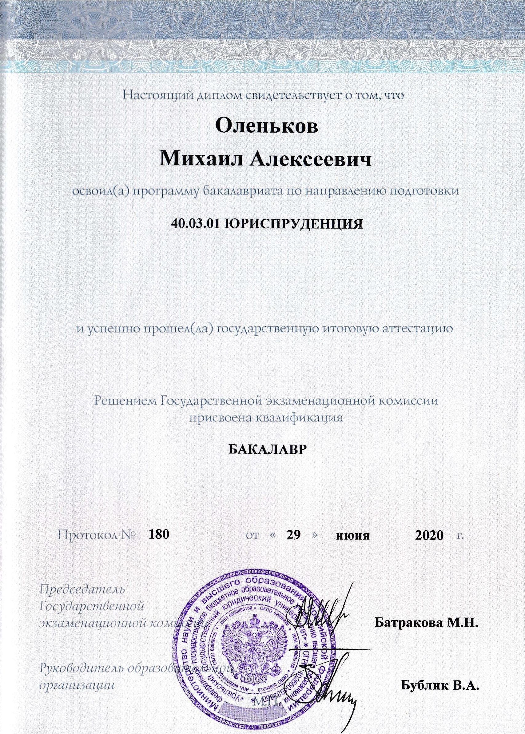 • бакалавриат по направлению «Юриспруденция»;