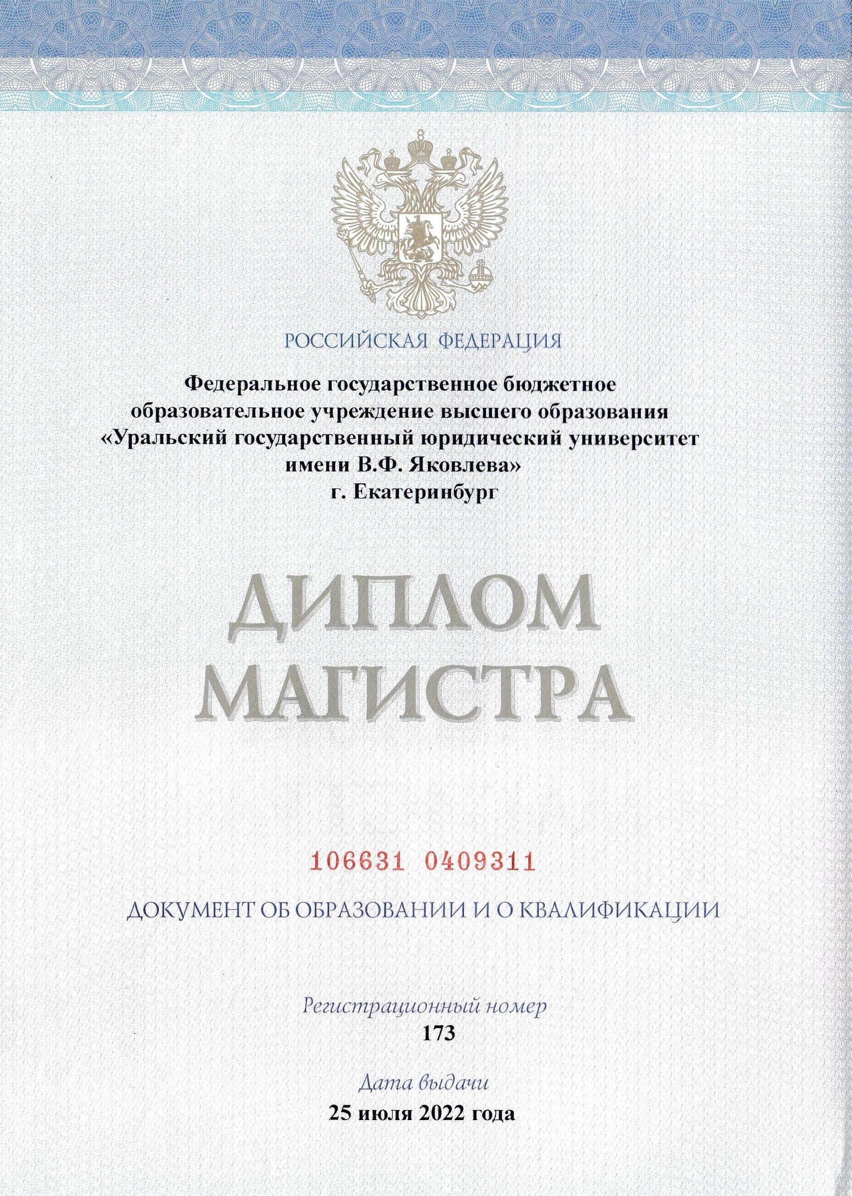 Окончил Уральский государственный юридический университет: